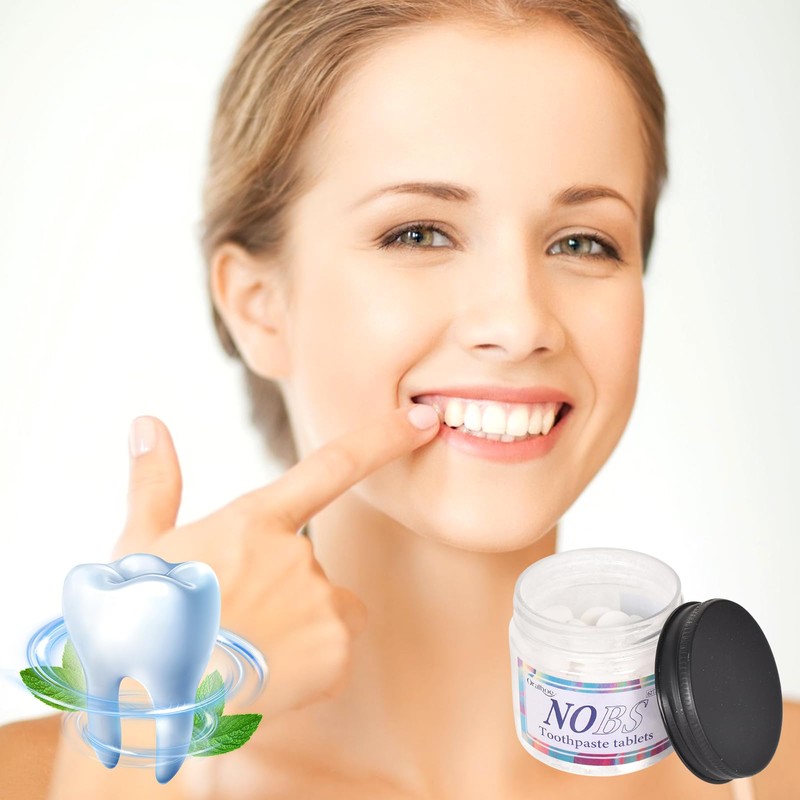 The practical toothpaste tablets taste refreshing of peppermint and are suitable for daily dental care.