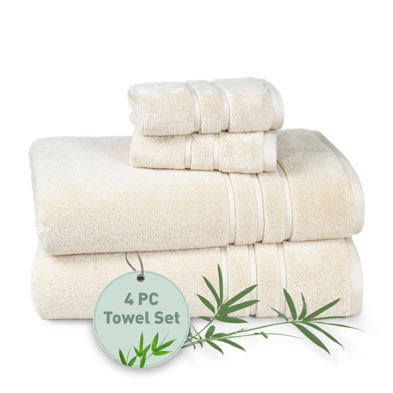 Eco Twist 4 Pc Bath Towel Set, 2 Bath Towel 30x58 in, 2 Washcloth 13x13 in, Cotton and Viscose from Bamboo Towel, Plush, Absorbent, Zero Twist Bathroom Towels, Lamb's Wool