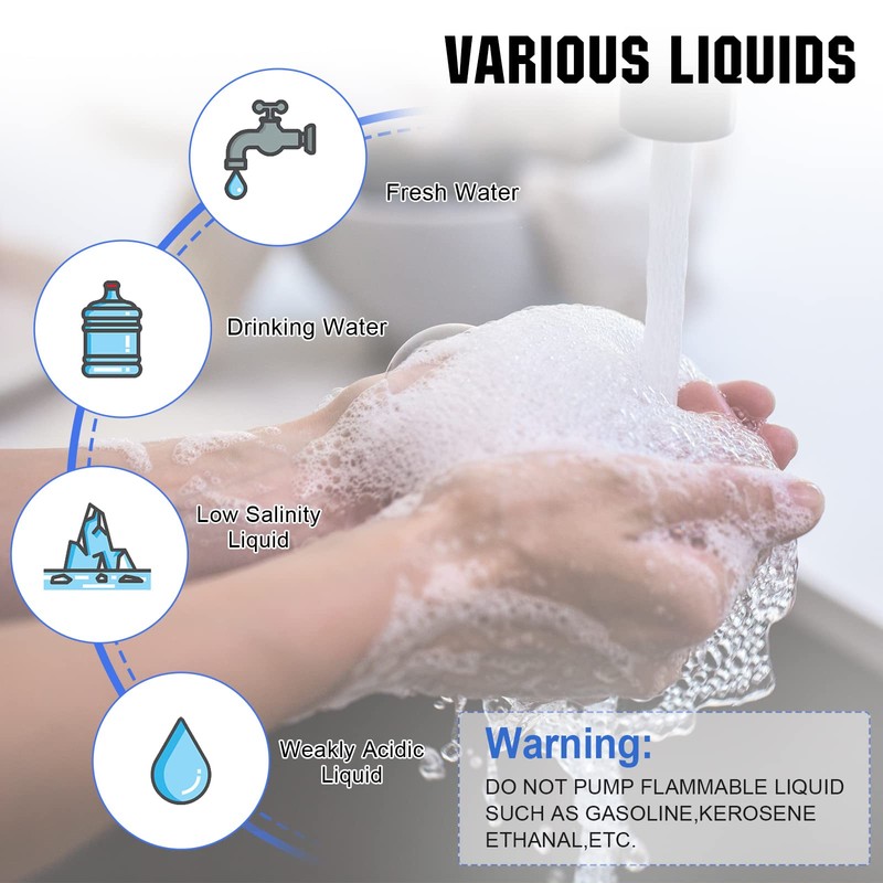 - Multipurpose: The nemesis of low water pressure. Support continuous operation for more than 1 hour. The water transfer pump is suitable for many fields, like RV, Marine, Boat, Irrigation, Sprinkler, Faucet and so on