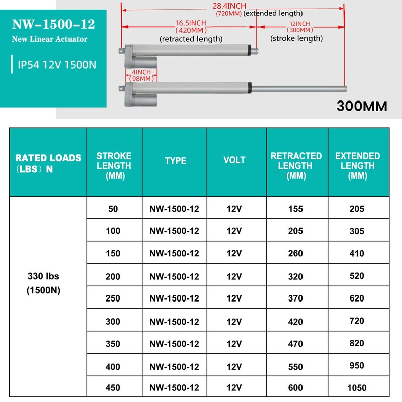 - ✔Heavy Duty - The alloy-steel shaft accompanied by metal gears allows it to push and pull up to 330 lbs.It will be great to use the actuator with our controller, which helps to control your actuactor to Forward & Reverse.