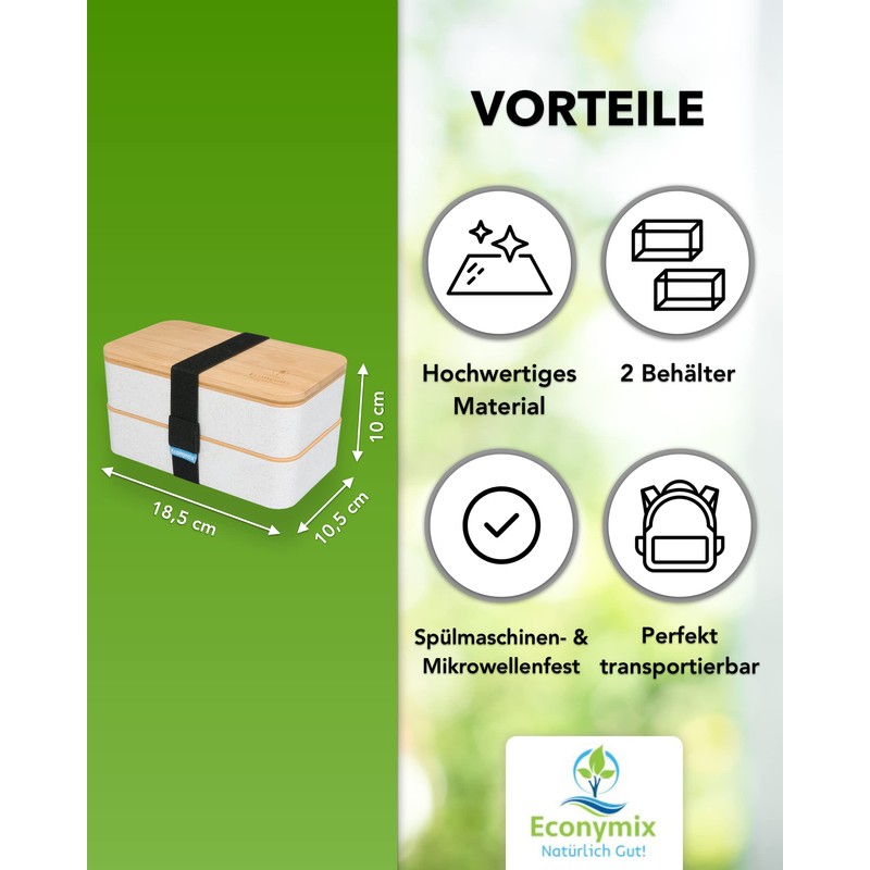 - Ideal for everyday use: the double-tier bento box set with compartments from Econymix is ideal as a daily companion for work, university and school as a food box, bread box, lunch box and meal prep box.