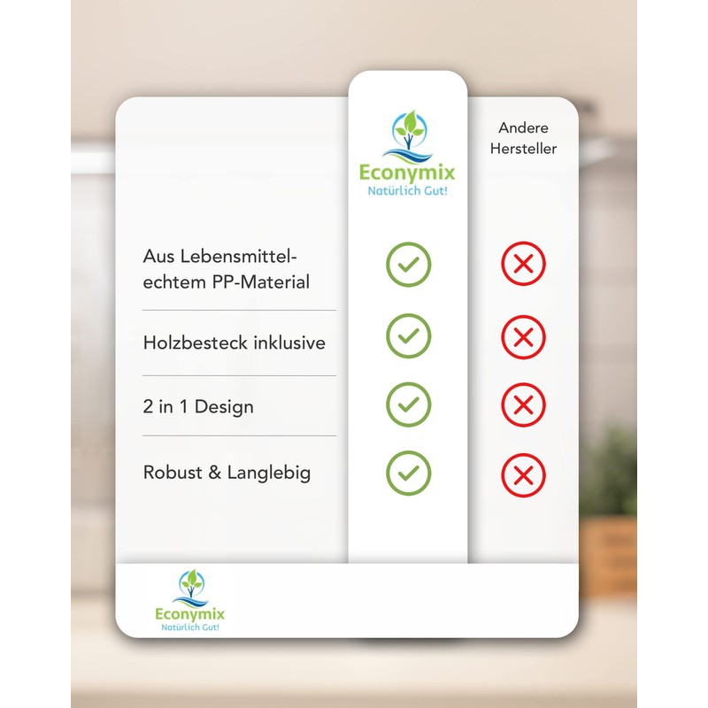 A matching cutlery set with knife, fork and spoon made of wood is included in the set and allows you to easily eat food of all kinds on the go.