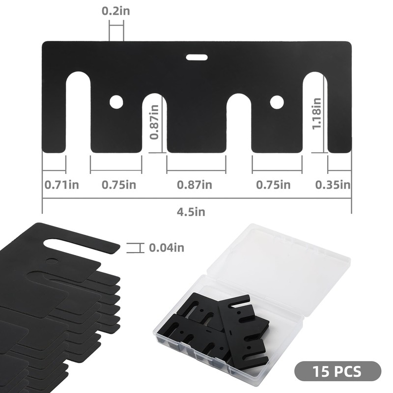 - Standard Size: Each shim measures 4.5" in length and 1.6" in width,and 0.04 inch thickness, suitable for most 4-inch standard self closing door hinges on the market. They can effectively remediate gaping doors without causing obstruction or inconvenience.