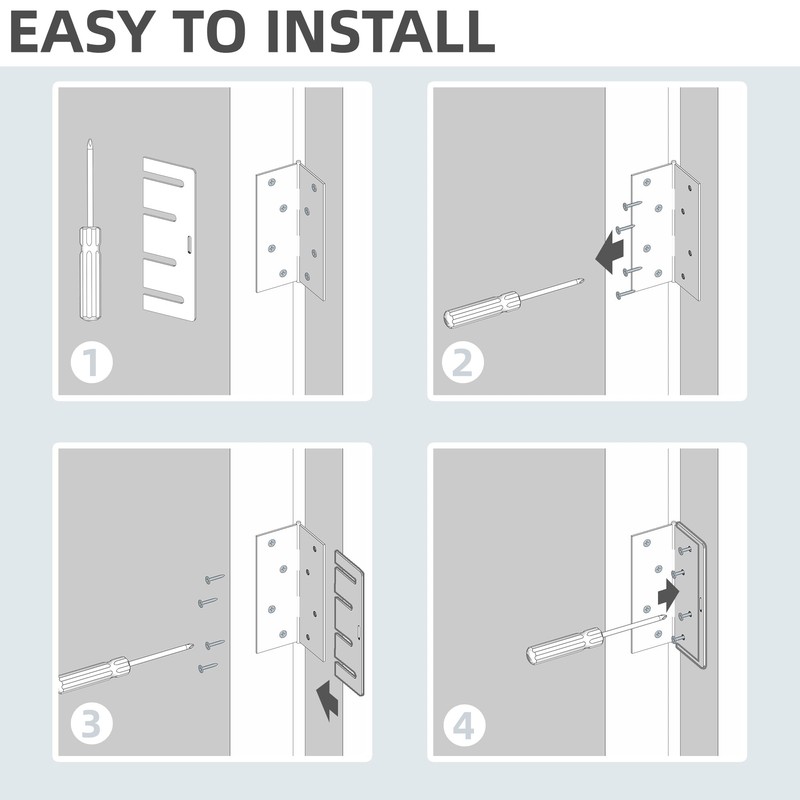 - Easy to Use: You don't need to remove the hinge, just loosen the screws on the hinge, insert the PVC hinge spacers under the door hinge, and then tighten the screws to complete the repair. Perfect for fixing misaligned hinges or filling gaps with minimal tools and effort.