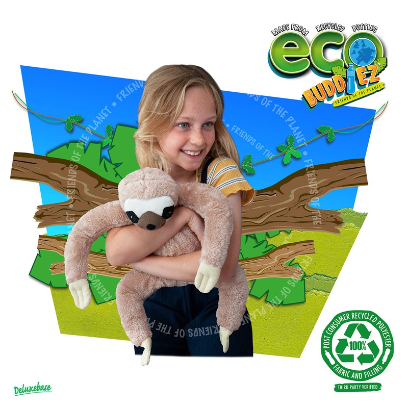 - CONSERVE, PROTECT, REDUCE: They contain no plastic beads! Each super cuddly EcoBuddiez sloth toy is made from 100% recycled fabric and fibre fill.