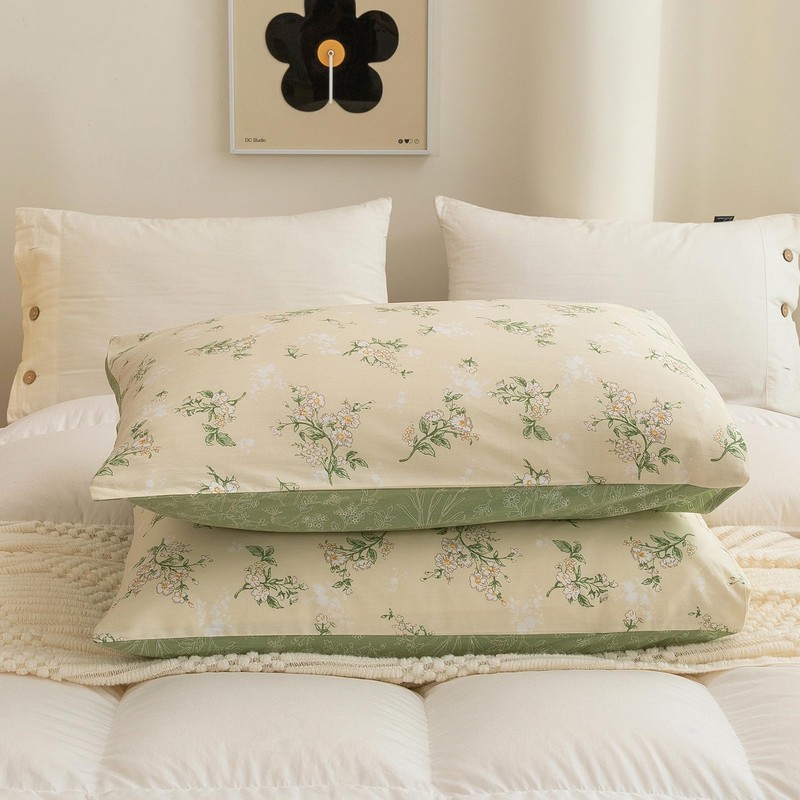 ECOCOTT 2 Pack Pillowcase Queen Size, Green Floral Pillow Cases Set - 100% Cotton Pillow Covers with Envelope Closure (Queen, 20"x30")