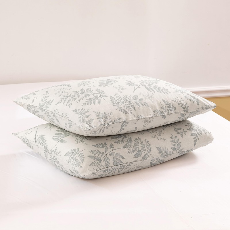 ECOCOTT 2 Pack Pillowcase Standard Size - Green Botanical Plant Leaves Pattern Pillow Cases Set, 100% Cotton Pillow Covers with Envelope Closure (Standard, 20"x26")