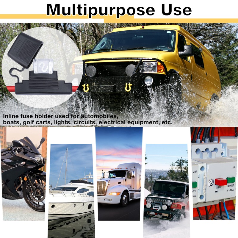 - Wide Application: The inline fuse holder is suitable for a wide range of vehicles including cars, trucks, SUVs and watercrafts, providing enhanced circuit protection for car security alarms, navigation GPS systems and car recording devices