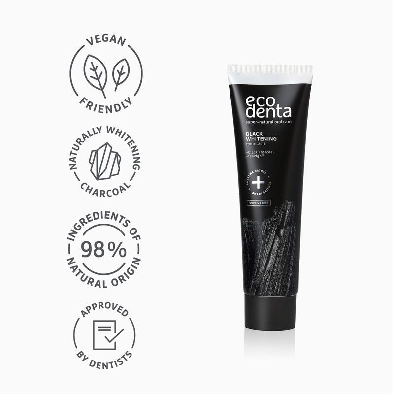 Ecodenta Charcoal Toothpaste, Teeth Whitening Toothpaste I Naturally Whitens Teeth and Removes Plaque I Black Natural Toothpaste Fluoride Free, 100ml