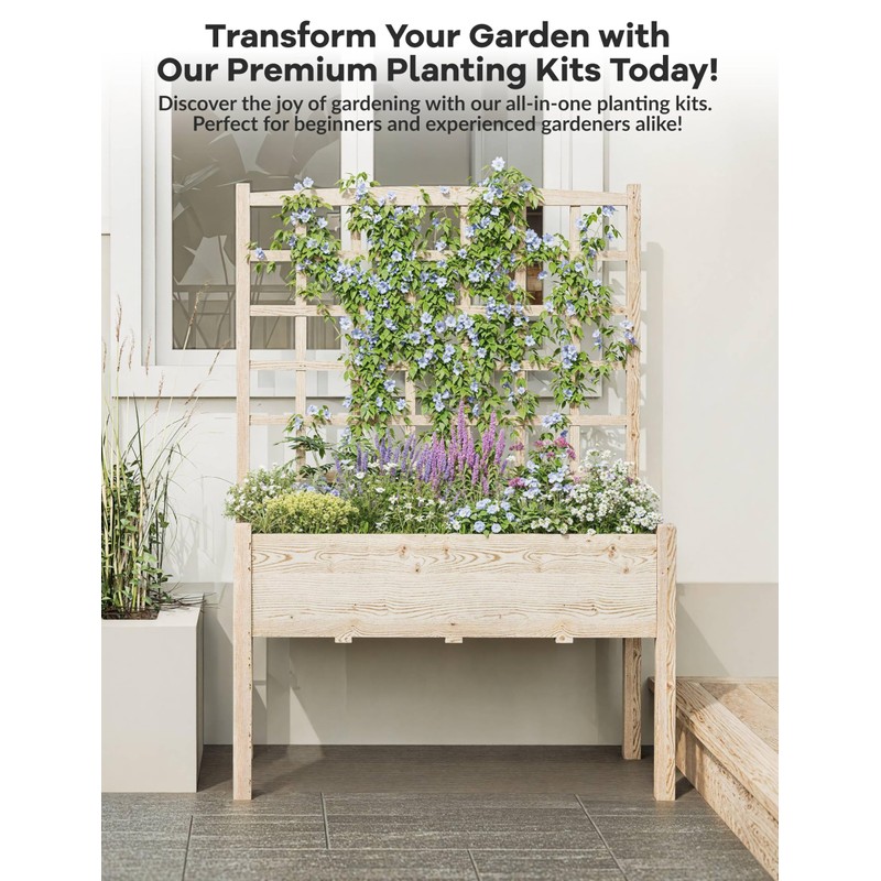 - 5,Stylish Outdoor Centerpiece: The attractive natural wood finish complements any outdoor decor style from modern to rustic. Customize with your choice of stain or paint to match your personal aesthetic. Includes a protective liner and works beautifully on patios, decks, or balconies. Note: Each unit showcases unique wood grain variations that enhance its rustic charm.