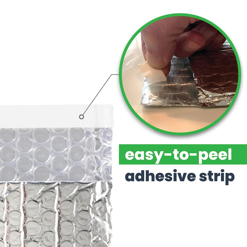 - EASY PEAL TO SECURELY SEAL - Each insulated bubble mailer has a food grade self-sealing, easy-to-peal adhesive strip to protect your items. The adhesive strip and reflective metalized foil create a durable thermal insulation barrier.