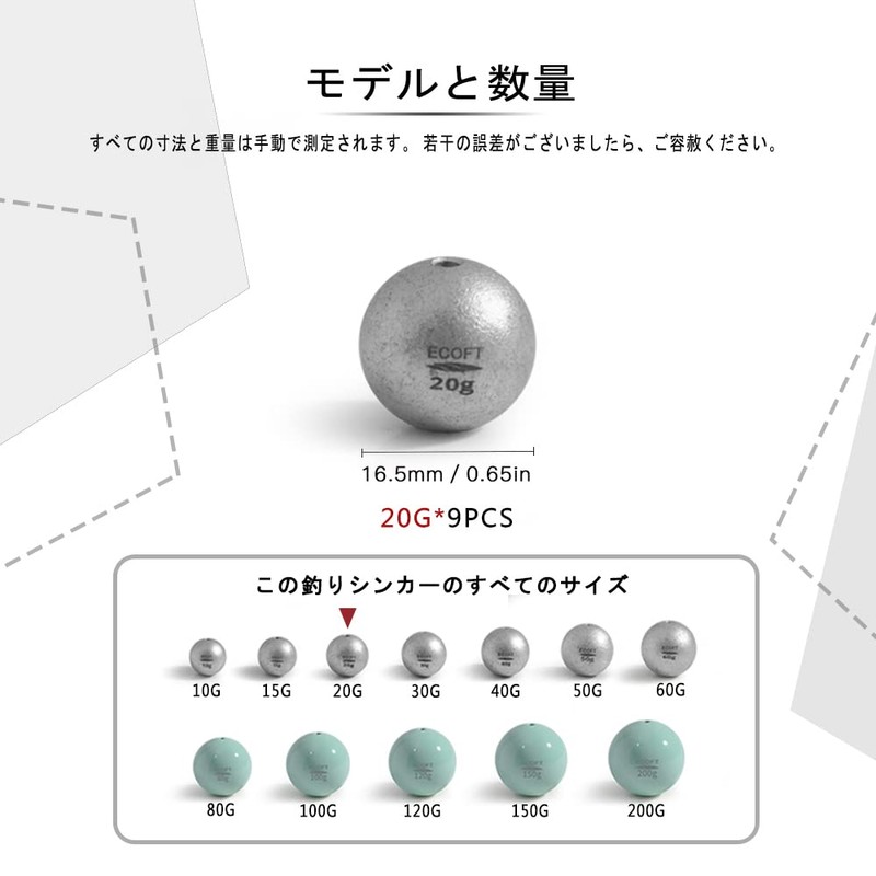 ECOFT Lead Free Sinker 10g - 200g Sphere Ball Round Ball Cannonball Sinker for Fishing Coated Fishing Sinker Deep Sinking Weight Assorted Size Pack Single Size and Boxed Mixed Set Deep Sea Shallow Sea Fishing Weights (20g-9pcs)