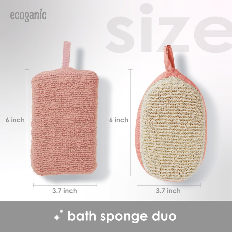 Ecoganic 2PK Set Exfoliating Shower Loofah Body Scrubber, Bath Sponges for Shower (Pink)