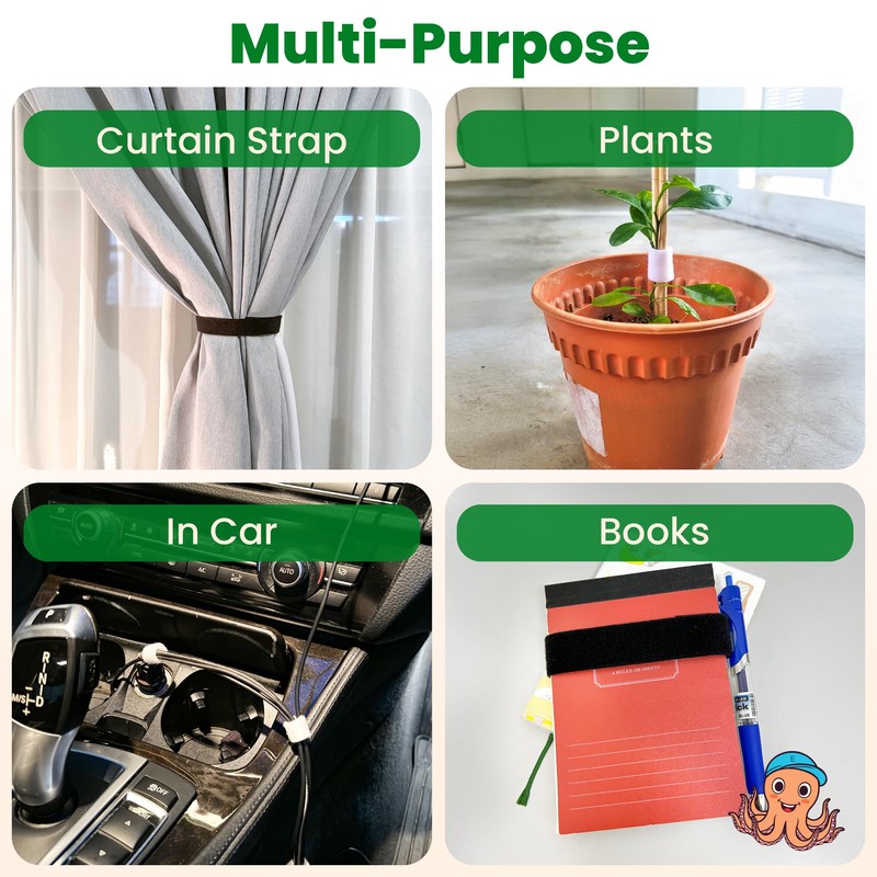 • MULTI-PURPOSE TIE WRAPS - Perfect for any task you'd typically use a strap, rope, or twine for, but with greater ease and gentleness! Beyond cable and cord management, it's also excellent for garden use, for securing shrubs, vines, plants and flowers in place without hurting them. Ideal for use at home, in the garage, office, vehicle, and even during camping and other outdoor activities too. Get yours today!