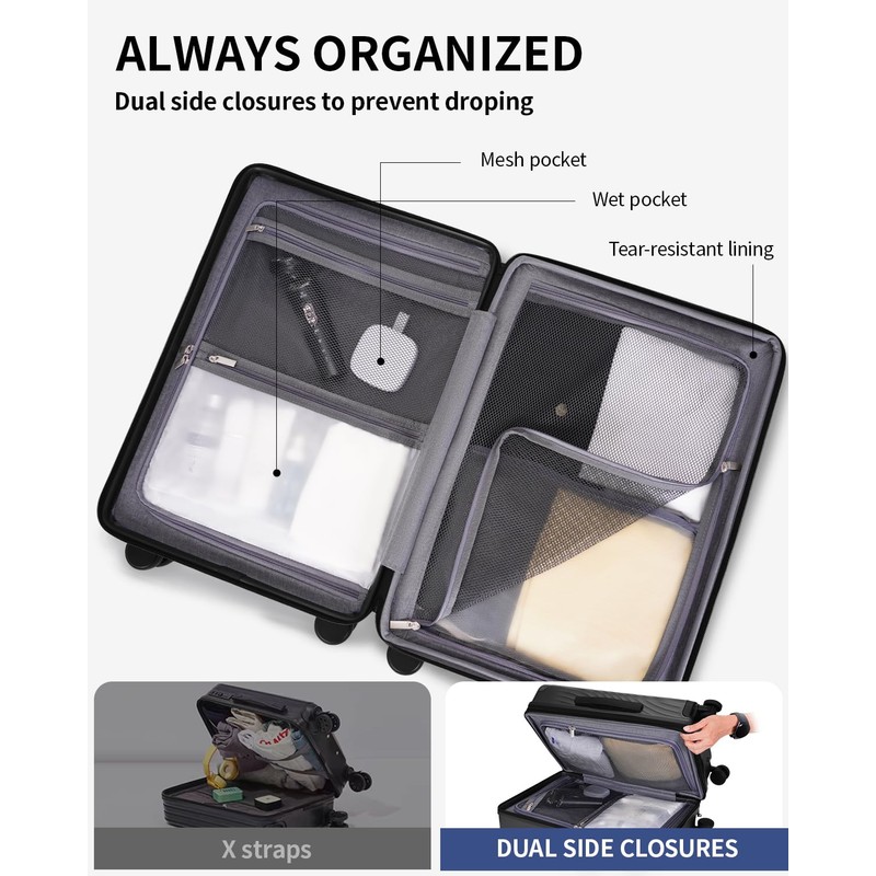 • 【Dual Full-Closure Compartments】: Two fully enclosed compartments with zippered closures prevent shifting, keeping your belongings secure and wrinkle-free during travel. Includes a wet zippered pocket and mesh pocket for flexible storage, ensuring organized packing. Plus, a TSA-approved lock allows airport security inspections without damage, ensuring peace of mind and hassle-free travel.