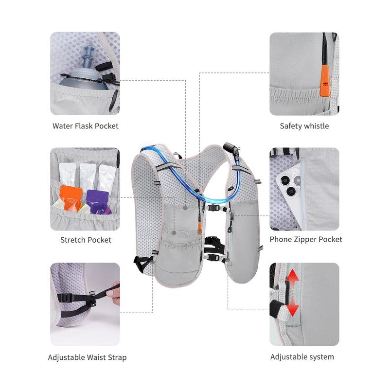 ECOHUB Running Hydration Vest Backpack,Lightweight Breathable Pack with 2L Water Bladder Bag Daypack for Hiking Trail Running Cycling Race Marathon for Women Men (Grey)