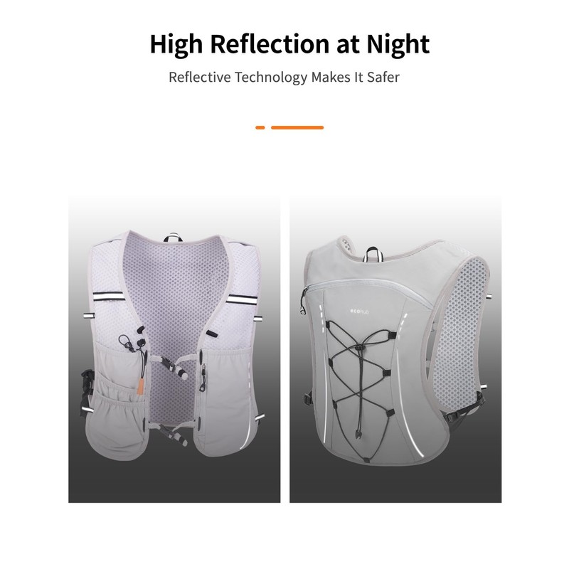 - 【Breathable and Ergonomic Design】 Ecohub running hydration vest engineered with 3D contour stitching that follows spinal curvature, reduces vest shift and bouncing during runs. The breathable rhombic ventilated mesh design keeps your back cool by maintaining air circulation, preventing discomfort due to accumulated heat. (PATENT PENDING)