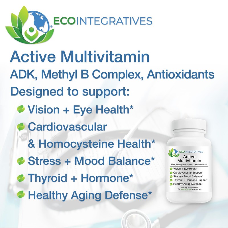 EcoIntegratives Active Multivitamin | ADK, Methyl B Complex, Antioxidants | Quatrefolic Folate, Methyl B12, P5P, Vitamin D3, K1/K2 | 60 Vegetarian Capsules