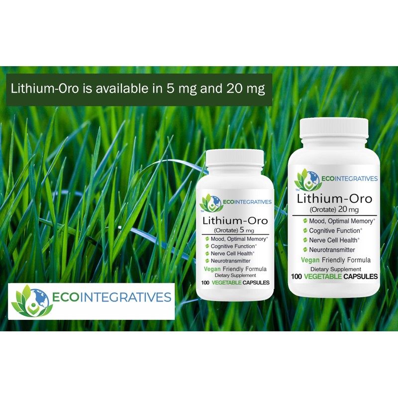 EcoIntegratives Lithium Oro 20 mg, Supports Healthy Mood Emotional Wellness, Behavior, and Memory. Bioavailable, 100 Caps (Elemental Lithium Orotate)