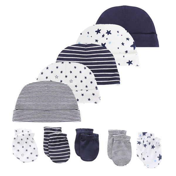 Ecojoy Baby Hats with Mittens Set Boys Grils Infant Beanie Caps Unisex Newborn Hospital Hat with Scratch Mitten Set for Baby