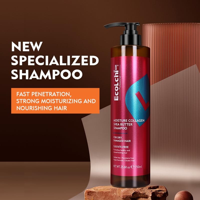 ECOLCHIPRO Collagen Shea Burtter Shampoo Herbal Extract Moisture Deep Repair Smooth Shampoo for Dry and Damaged Hair, 750ml 25.6 fl. oz