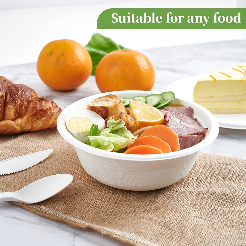 - Variety of Functions: Disposable bowl is the perfect choice for your party or picnic. You can use these compostable bowls for all kinds of hot and cold food, such as soup, desserts, salad, snacks, desserts. Bagasse bowls can help you reduce cleaning time