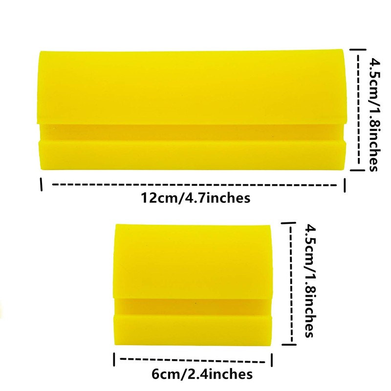 - Dimensiones: rasqueta larga de silicona con tamaño de 11,4 cm de largo x 4,8 cm de ancho; rasqueta de silicona corta con tamaño de 6 cm de largo x 4,8 cm de ancho.