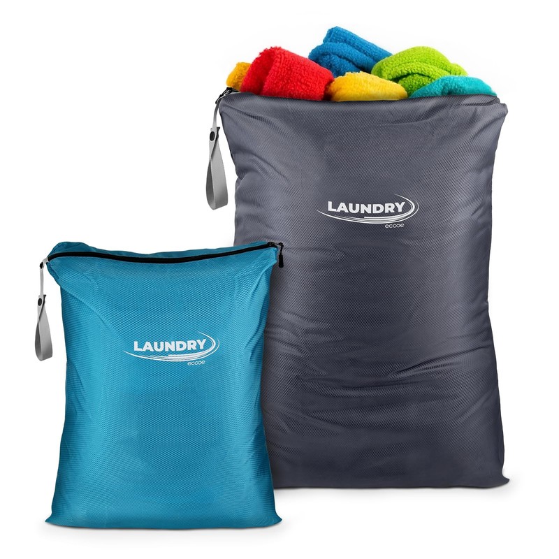 Ecooe XXL Wäschesack, Wäschesack Reise Mit Reißverschluss, Großer Wäschesäcke für Reisen und Camping, 2er-Pack wäschebeutel schmutzwäsche, Zwei Größen Wäschesack (60cm x 90cm und 50cm x 65cm)