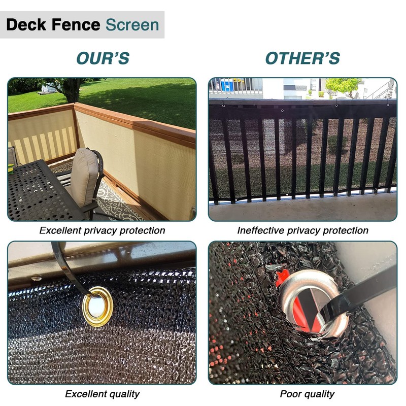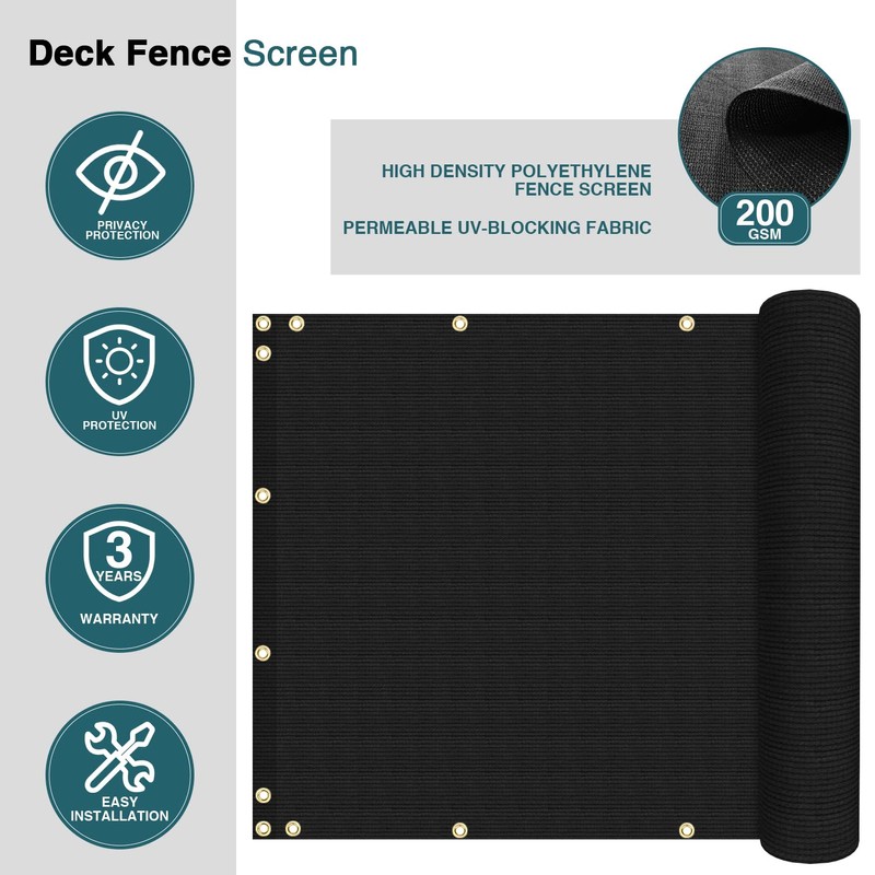 - HIGH QUALITY FABRIC: Our balcony fence screen is made of 200 GSM high density polyethylene (HDPE) material, durable and breathable. Block up strong UV rays and not easy to fade for long-term use.