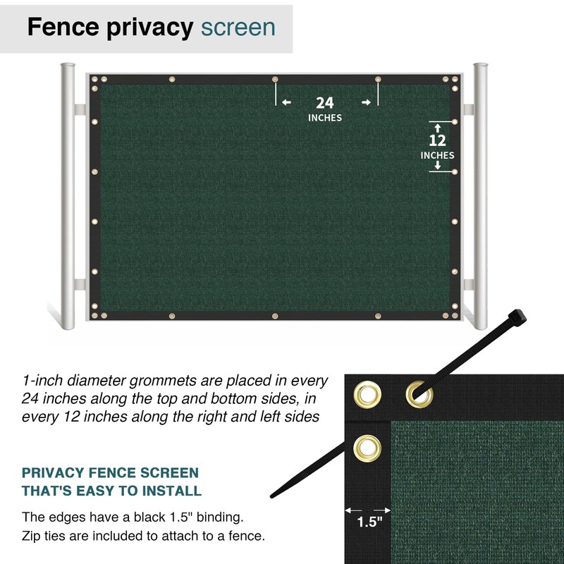 - EASY TO INSTALL: Zip ties are included, you can use them to fasten the grommets to the fence in each side and keep the privacy fence secured. The vertical edges can be easily attached to the fence posts and the horizontal edges can be quickly attached to the top and bottom rail of the fence with our zip ties.