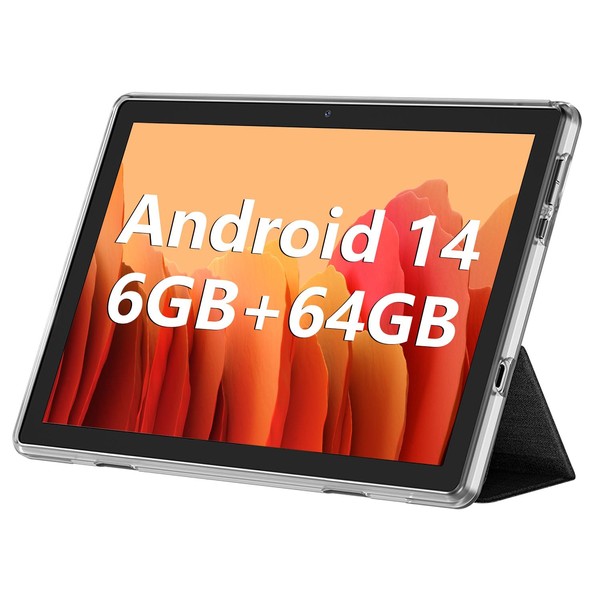 Android Tablet, 10.1 inch Android 14 Tablets 6GB RAM 64GB ROM 1TB Expand, 1280x800 IPS HD Touchscreen,6000mAh Battery, Bluetooth, Dual Camera, GMS, WiFi (Black)