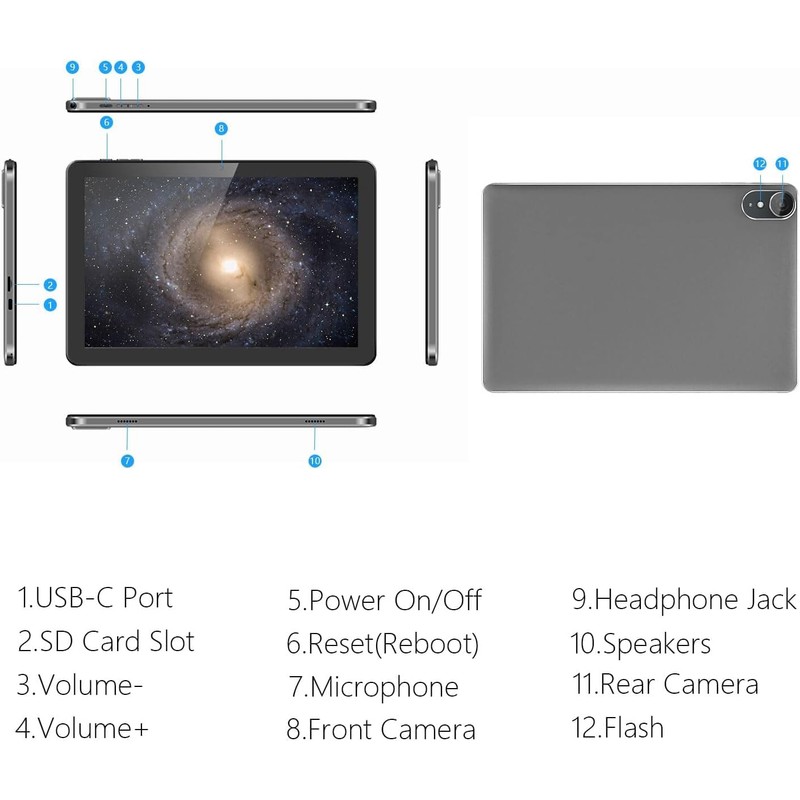 - 【IPS Display & Dual Camera】- Equipped with 10.1" IPS 1280x800 HD screen, 2.0MP front camera/8.0MP rear camera, this android 13 tablet offers you a delightful experience while watching movies, reading books, or making video calls.