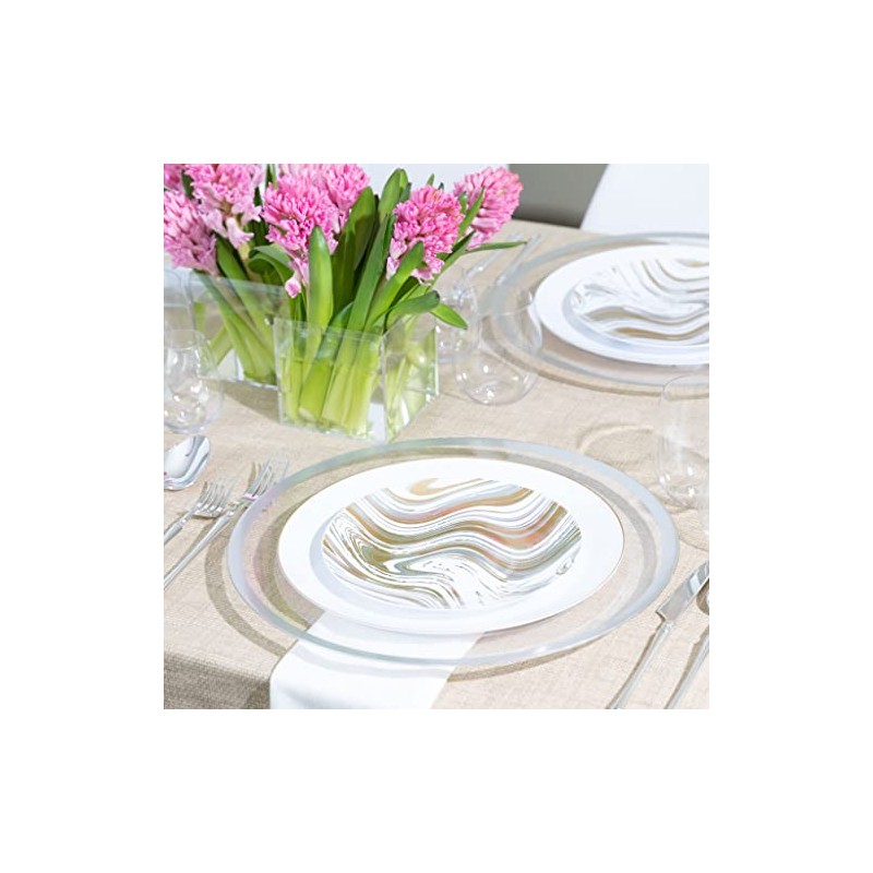 - MANY USES: Our plastic white dinner chargers and salad plates are a great addition to your party celebration. They are ideal for Weddings, Birthday Party, Bridal Showers, Baby Showers, Engagement parties, anniversaries, family reunions, and much more!