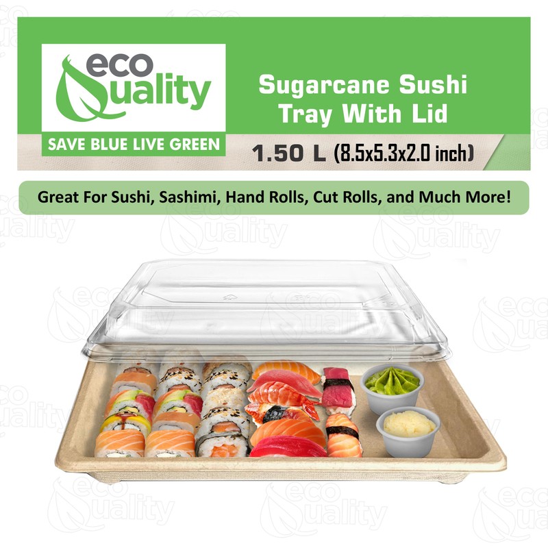 • PLASTIC ALTERNATIVE: Great alternative to plastic sushi trays, our x-large compostable EcoQuality Sushi Plates with clear lids are a great alternative to your everyday plastic sushi trays. Made from a 100% Biodegradable and Compostable Sugarcane bagasse. Elevate your presentation and standout from the competition while making a change to better our planet!