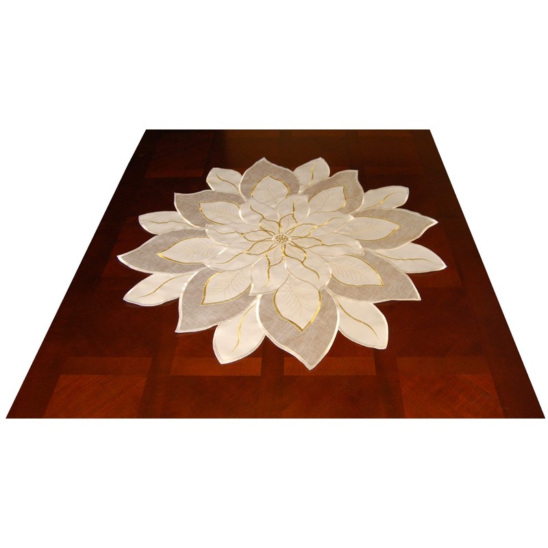 EcoSol Designs Embroidered Holiday Table Topper (33.5" x 33.5", White) Poinsettia