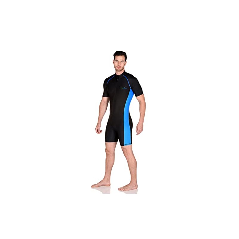 EcoStinger Men's One Piece Sunsuit Short Sleeves Swimsuit UV Protective Swimwear UPF50+ Black Blue (US, Alpha, Small, Regular, Regular, Standard, Black Blue)