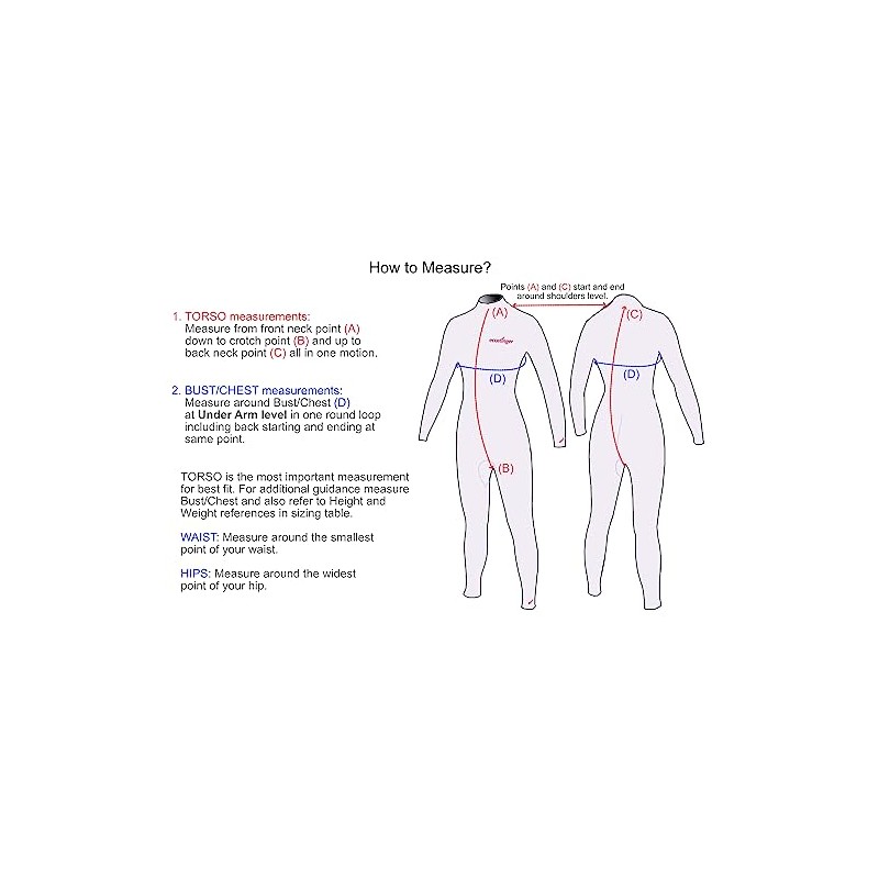 For best fit refer to sizing table image; start with torso measurements and refer to height and weight references if necessary.