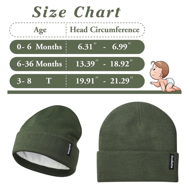 - Design: The fleece-lined baby beanie is embroidered with the brand name "EcoSuma" on the front, creating a simple and classic style, keeps out the cold and is even cuter.