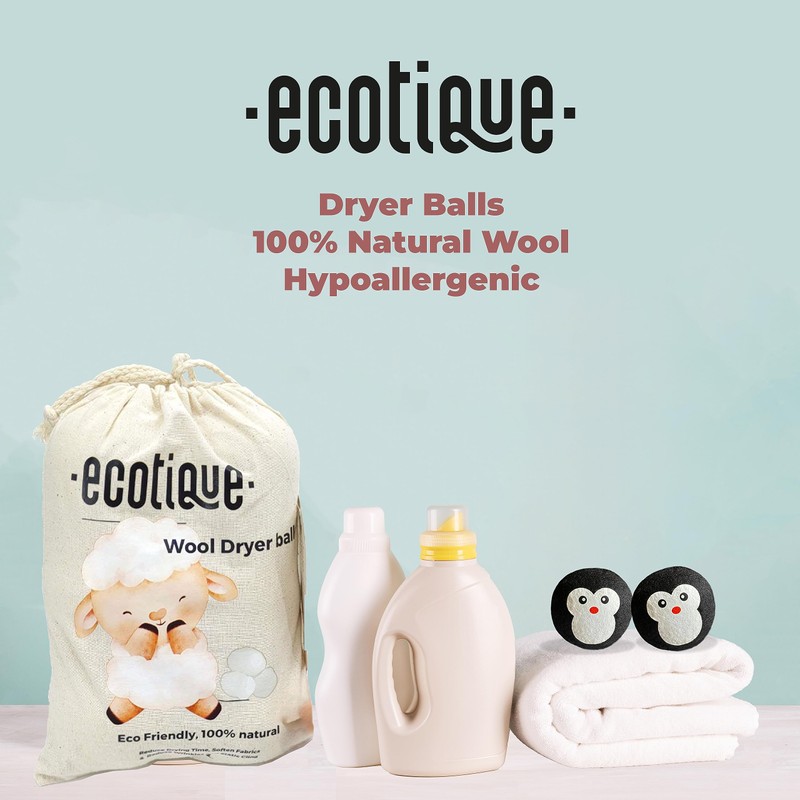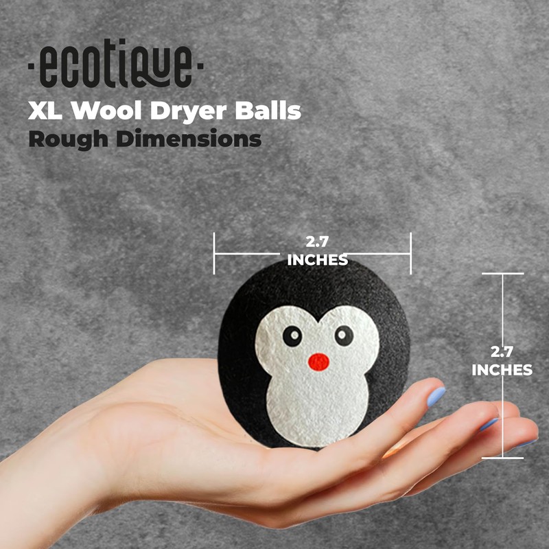 Ecotique Wool Dryer Balls - 100% Organic New Zealand Wool, Fabric Softener for 1000+ Loads, Baby-Safe, Hypoallergenic, Energy Efficient, Wrinkle Reducing, Pack of 6 XL Balls