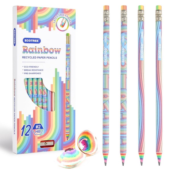ECOTREE Pencils #2 Sharpened Pencils for Kids Cute Rainbow Pencils Number 2 Pencils for School Supplies, Back to School 12 Count