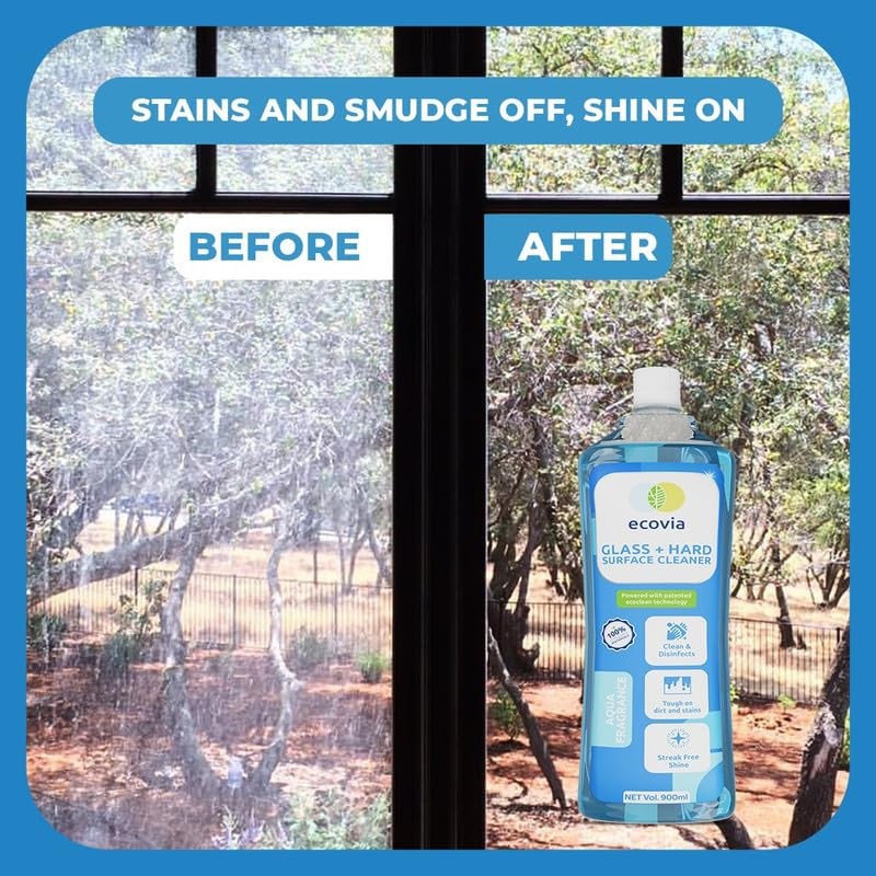 - Crystal Clear Shine for Glass & Mirrors: Achieve a streak-free, spotless finish on your windows, mirrors, car windshields, and other glass surfaces. Say goodbye to dirt, dust, and grime with Ecovia powerful glass cleaner.