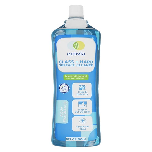 Ecovia Glass and Hard Surface Cleaner (900 ml) | Streak-Free Shine for Windows, Mirrors, Car Windshield, Appliances & More | Plant Based Formula | Multi Surface Liquid Cleaning