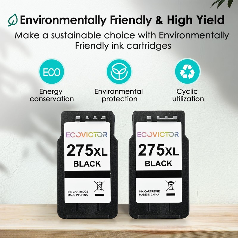 - Vivid, Professional Results: Formulated with premium-quality ink, our pixma 275 black xl replacement for canon pg 275 black ink cartridge delivers crisp, clear text and rich, vibrant images. EcoVictor 275 xl ink for canon printer ink 275 is perfect for everyday documents, schoolwork, creative projects, and photos—fade-resistant and smudge-proof.
