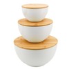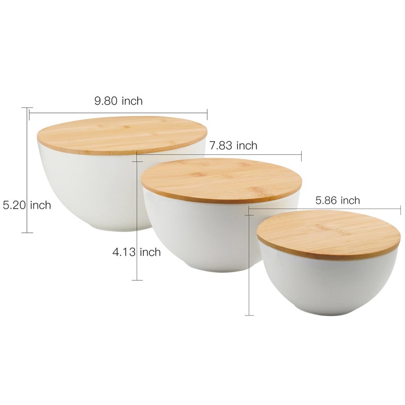 ECOWAY Salad Bowl Set of 3 with Bamboo Wooden Lids, Mixing Bowls Set, Nesting Bowls for Space Saving Storage, Made with Durable Eco-Friendly Bamboo Fiber, Great for Prepping and Serving Food, White