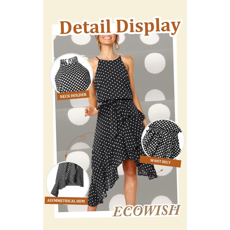 ECOWISH Polka Dot Womens Summer Dress Flowy Cute High Low Sleeveless Boho Criss Cross Halterneck Cocktail Midi Sundress 2025 Black Medium