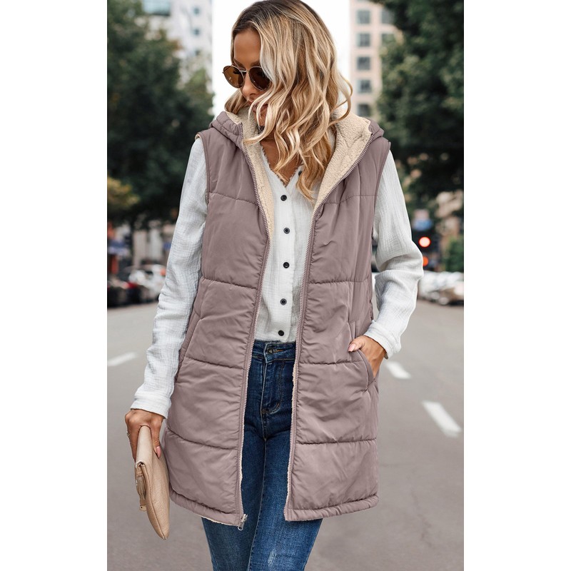 - Womens Hooded Down Vest:Features sleeveless,hooded,full zipper, mid-length,solid color , relaxed fit, lapel or stand collar, fleece lined. Reversible design allows you to switch up your style effortlessly. Two side pockets, perfect for keeping your hands warm or storing small essentials. Plus, there's even an additional inner pocket for added convenience.