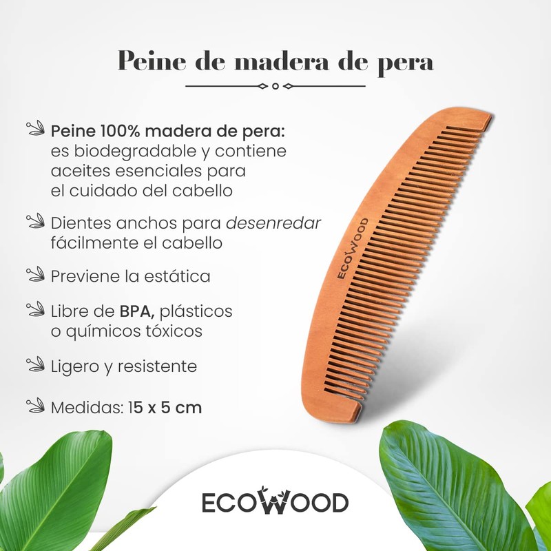 Ecowood® Peine para Cabello Hecho 100% de Madera de Pera (Pear Wood)