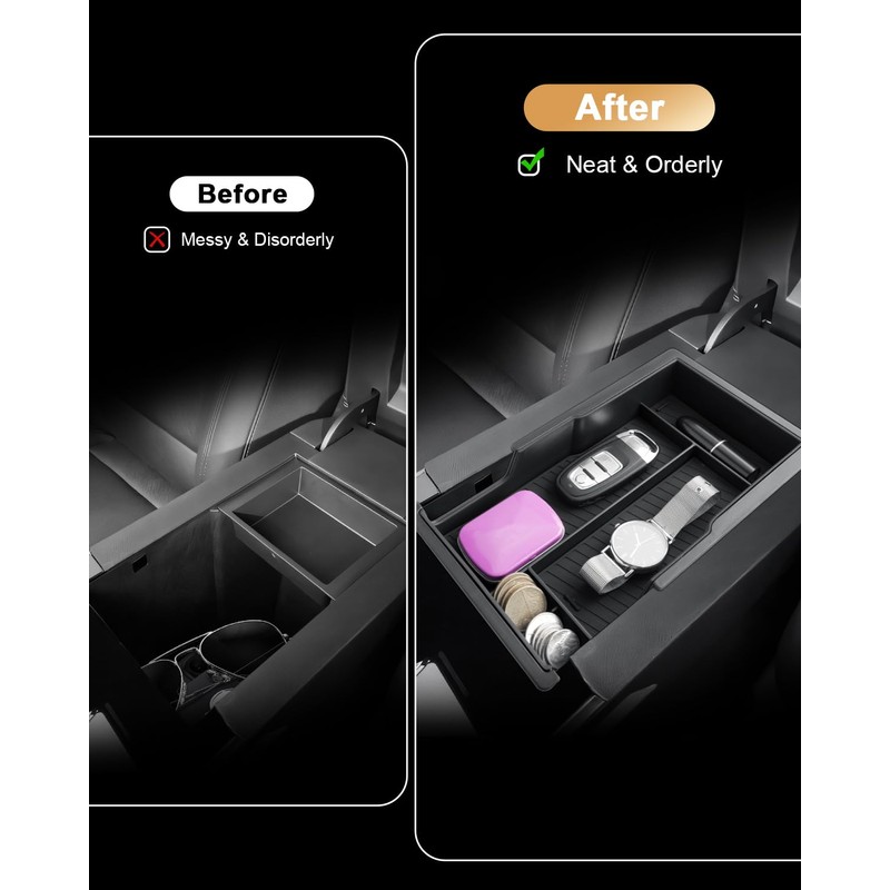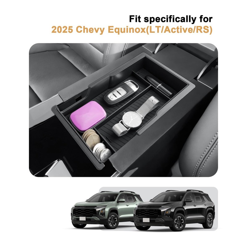- [Custom-Molded Storage Boxes] The custom-molded dual-layer center console organizer is specially designed for optimal space usage. These precise designs offer ample storage and organizational options for items like phones, keys, and cards, keeping your new Equinox tidy and clutter-free.