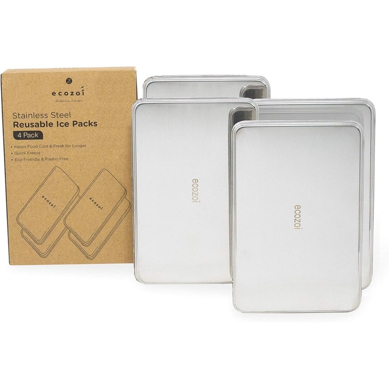 ecozoi Stainless Steel Ice Packs Set of 4 – Slim, Reusable Ice Packs for Lunch Boxes Small, Bento Bags & Coolers – Plastic-Free, Durable & Eco-Friendly LunchBox Ice Packs for Kids and Adults