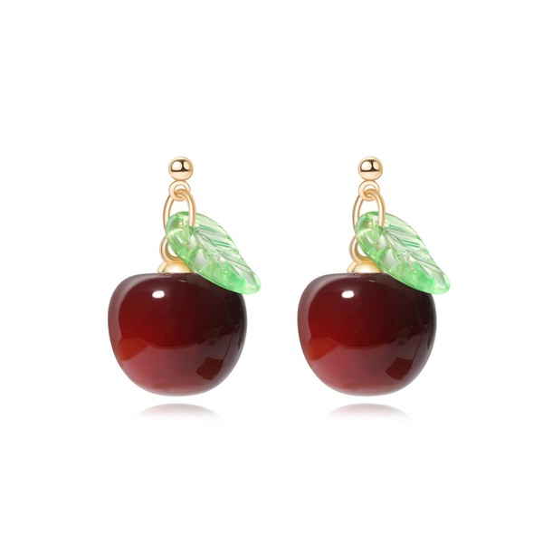 ecozran Cherry Leaf Dangle Earrings for Women Stylish Fruit Themed Accessories Single 3D Big Cherry Stud Earring Set Cute Elegant Jewelry
